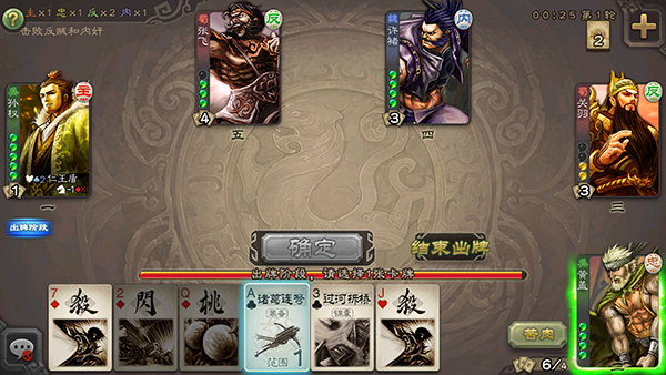 5、装备牌使用:装备牌分为武器牌、坐骑牌和防具牌,使用后持续生效。玩家可以根据自己的需要选择装备,以增强攻击或防御能力。