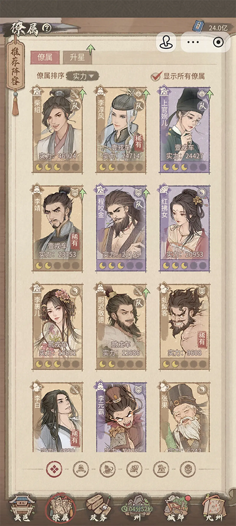 -队正首选主力角色,最好是不同属性的,可以让分配的队员继承队正最大的等级职级和宝玉,使队员分配任命建筑的时候,税收加成也是最高的。