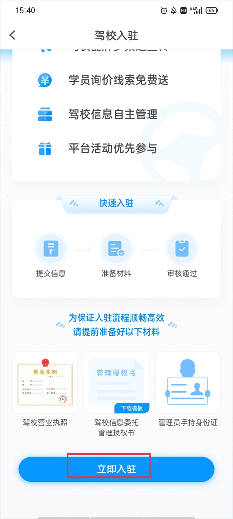 2、了解入驻的流程以及相关材料,点击下方的立即入驻。