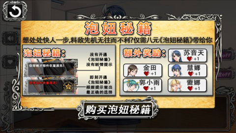 4、领取《泡妞秘籍》,就可以获得额外的恋爱提示,根据提示选择对话的内容,就可以百分之百表白成功啦