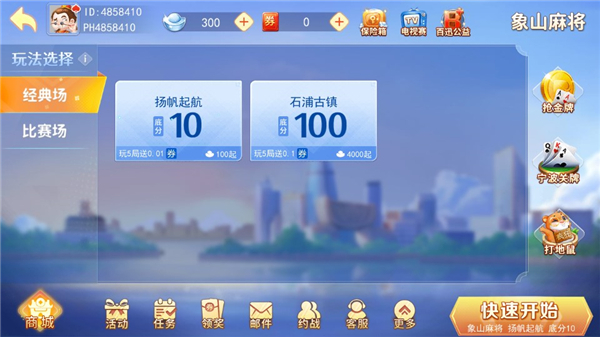 宁波游戏大厅最新版本是一款专为移动设备打造的本地特色棋牌游戏平台,汇聚了宁波麻将、奉化麻将、宁波地主等多种经典玩法。界面设计简洁清爽,画面精致,特效畅爽,操作起来非常舒适。除了地道的宁波玩法外,还有中国象棋等经典游戏,支持真人对局和高手争霸,适合喜欢竞技的玩家。