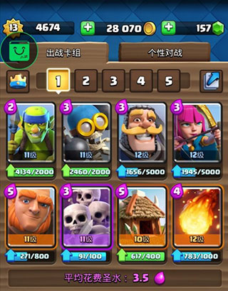 4、收集皇室战争家族成员和您熟悉的《部落冲突》军队,法术和防御建筑等卡牌,打造和升级您的卡组。