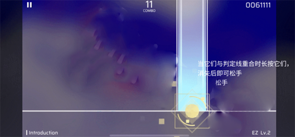 接下来是Hold音符,当它们与判定线重合时长按它们,消失后即可松手。