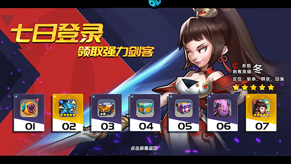 3、次日登录送“五星亚瑟”,七日登录送强力刺客“冬”!