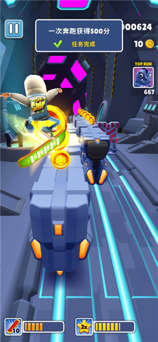 4、在行驶的路途中双击可以拥有滑板,就算撞到火车的时候也不会有什么事情;