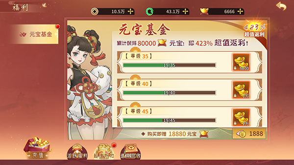 4、元宝基金:充值享受超值返利,花更少的钱享受更多的福利。