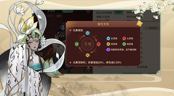 4、在《万灵山海之境》的世界里,是强调属性克制的玩法的,所以这也是为什么星术师在游戏中这么吃香的原因(因为星术师是游戏中唯一拥有全属性伤害技能的职业),依照“水克火,火克风,风克地,地克水”的排列顺序,当产生元素克制时,伤害会增加20%承伤减少20%。