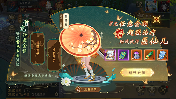 5、首充豪礼:首充任意金额领取超强治愈伙伴医仙儿。