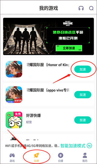 2、可以让你快速加速游戏,为你提供了直接搜索和导入游戏的方式;