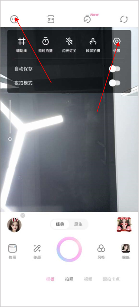 1、第一步我们先打开一甜相机,点击左上方三个点,选择进入设置。