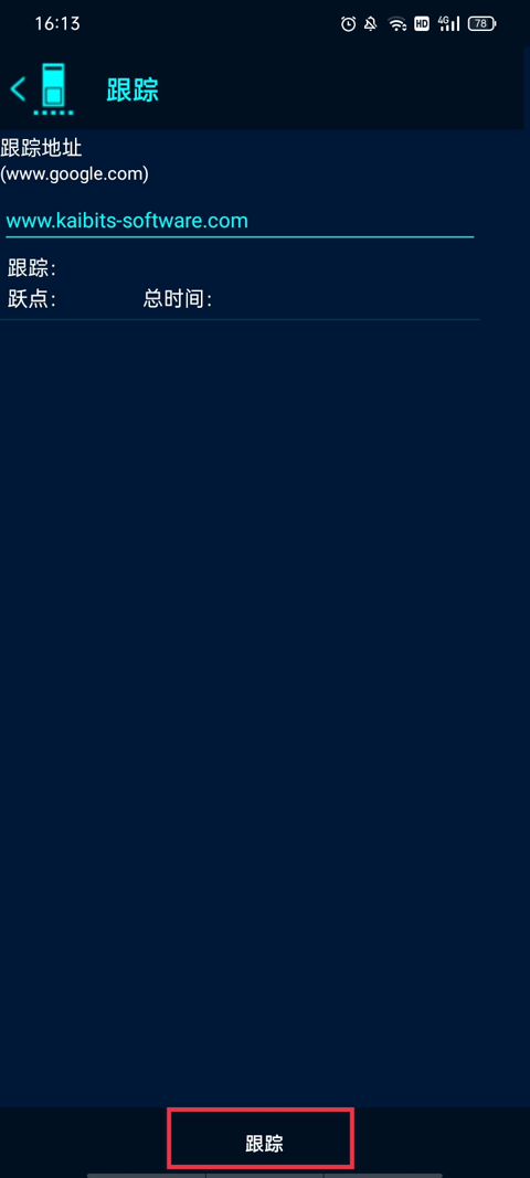 跟踪这项功能就是相当于查找不同网址它发送信号时的行动轨迹,填写跟踪地址,点击下方的跟踪,你就会看到它跳跃的点数了。