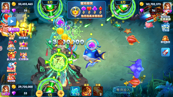 同时大神捕鱼游戏内每日签到可领取大量免费金币,更有超多精彩活动豪送丰厚奖励,助您一路成为捕鱼大神。不仅如此,游戏还支持多人对战,4名玩家可同台竞技,更有排行榜单彰显你的捕鱼实力。感兴趣的朋友还在等什么,快来下载体验吧!