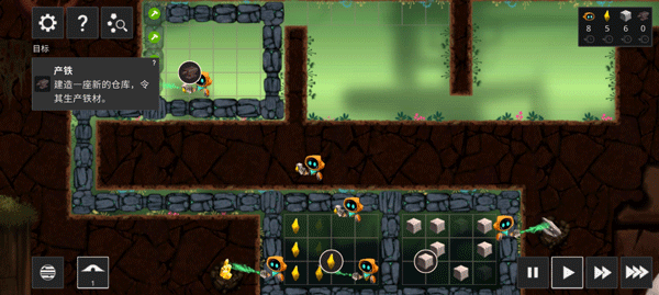 4、我们需要指挥一队智能机器人来进行资源采集,而我们需要帮助他们进行仓库的建造