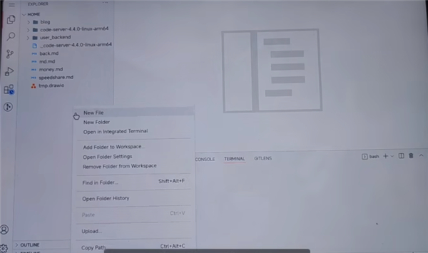 而且,vscode拥有大部分的功能,集成了终端模拟器,从dom渲染方式到canvas的优化 ,开发者可以体验快速 ,方便的全新终端模拟器,还支持写博客,写网页和编译代码等功能,基本实现VS Code在PC平台上能实现的所有功能,包括安装插件和适配各种语言,甚至可通过扩展可以实现快速的安装与使用官方或三方插件,绝对的实用。