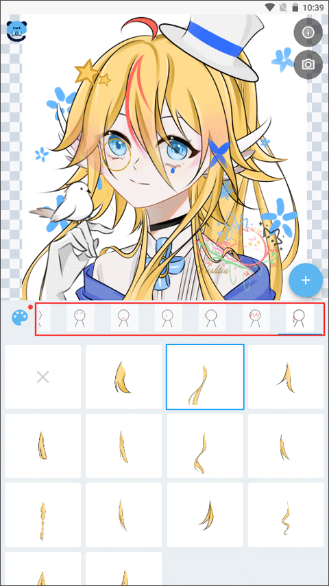 2、进入到画像编辑界面之后,就可以从眼睛、嘴巴、手、头发、衣服等各个地方进行二次创作;
