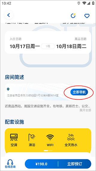 3、下单后可下拉到立即导航,即可寻找到房源位置