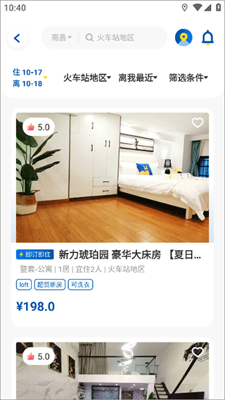 2、点击搜索栏可搜索你想入住的位置地标房源名称,软件会智能寻找附近的房源