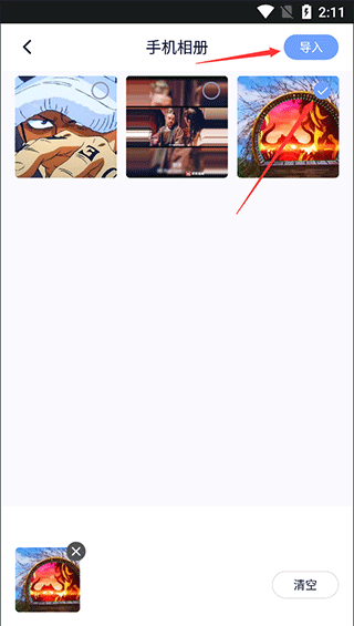 3、选择需要倒放的视频(支持多选编辑),再点击页面右上角的【导入】按钮