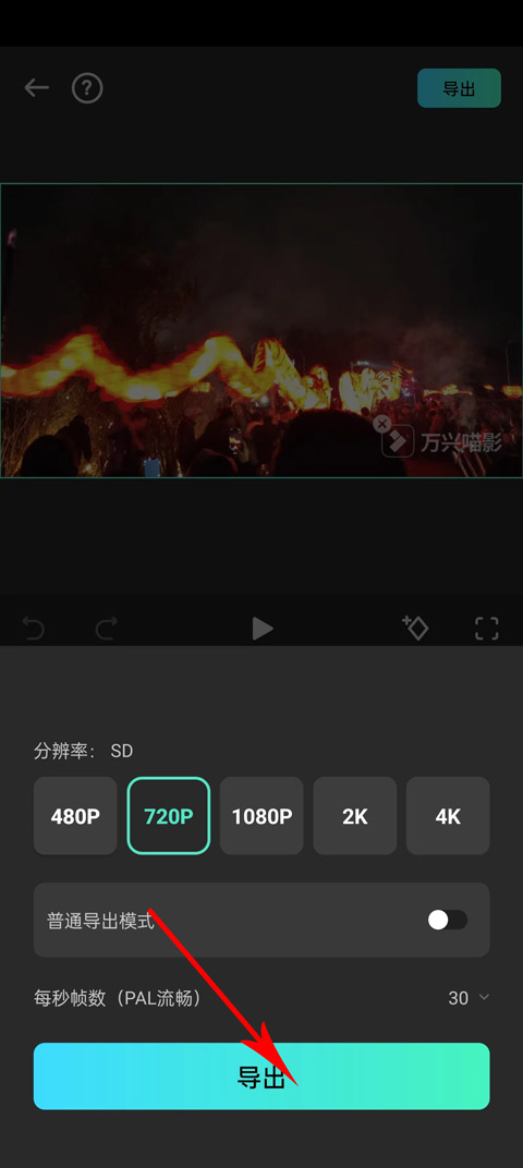 7、当编辑完成后,就可以点击右上角进行设置视频清晰度导出了。