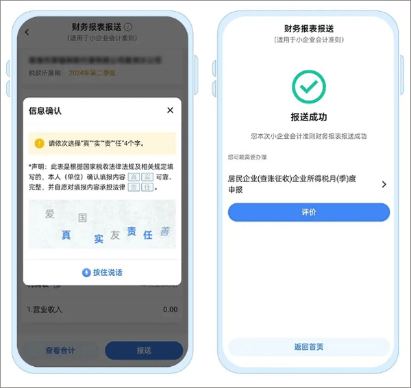 3、填报本期财务报表相关数据,下方可查看合计情况,确认无误后点击报送;