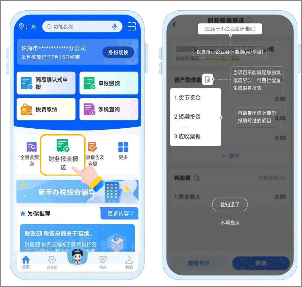 1、打开贵州税务app,也就是电子税务局app,点击“财务报表报送”;