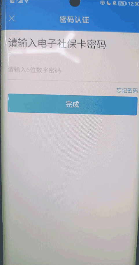 3、在密码认证这里输入你的社保卡密码,点击完成;