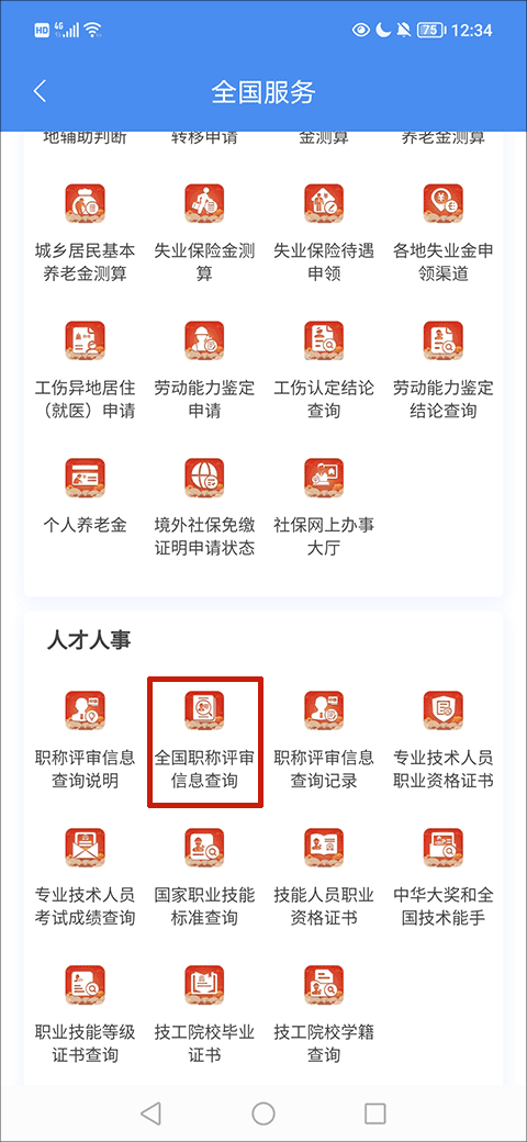 5、在更多服务的人才人事当中找到并点击“全国职称评选”选项;