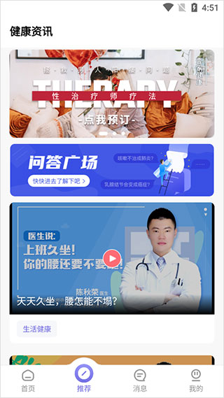 2、在推荐中,用户可以了解各种健康咨询;