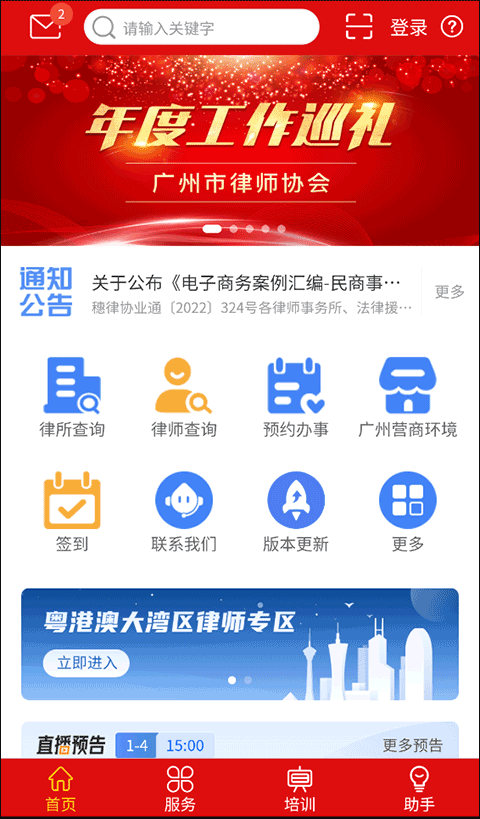 律兴app是面向广州市律师协会会员提供的一款专业移动应用平台,充分利用云技术为广州律师实习人员等其它类型用户设计和开发了一整套完整的个性化服务,提供了律师执业过程中常用的专业工具,实现协会活动报名、在线视频培训、一键维权、预约办事、年度考核、费用计算工具、第三方商城提供的服务等,致力于竭尽所能为广州律师打造最实用的信息化高速公路。
