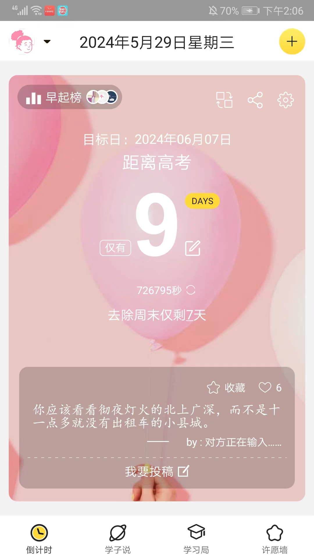 3、励志金句——倒计 时首页每天从投稿中选出一篇励志金句;