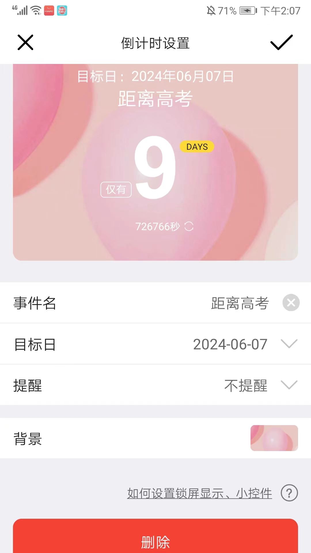 2、更有去除周末的实际学习时,还能设置为锁屏界面时刻提醒你;