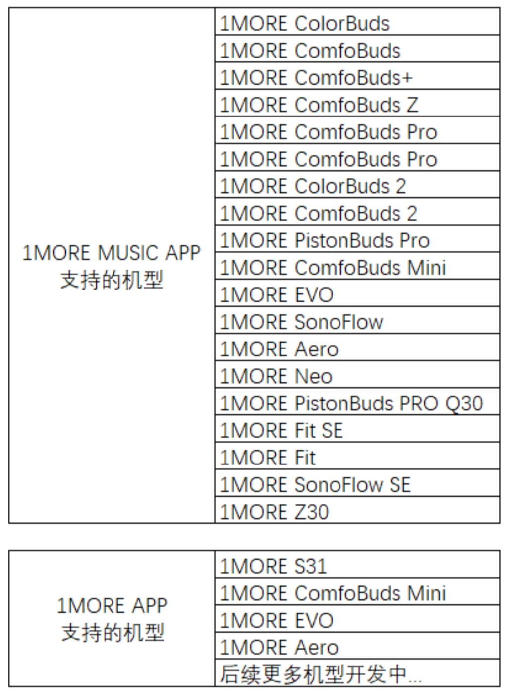 两个app都是官方产品,其支持的机型区别如下图对照所示: