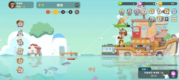 3、如果遇到大鱼钓不上来,可以提升角色的属性,如增加攻击力、体力等;