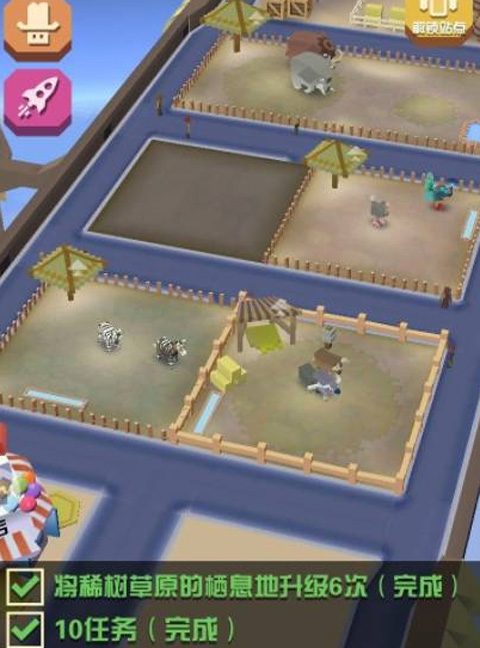 地图中还有不同的场景,灌木丛,大树,石块,大山,河流等等,抓到的动物会放到动物园中,玩家需要在动物园建造抓到动物的栖息地并给其升级,因为升级栖息地可以解锁更多不同种类动物。栖息地建好了之后就可以开放动物园给自己赚钱了,赚来的金币还可以继续升级栖息地。