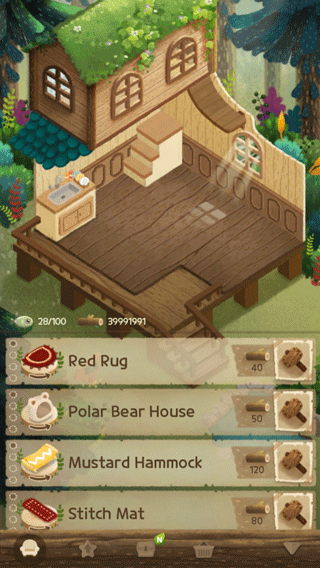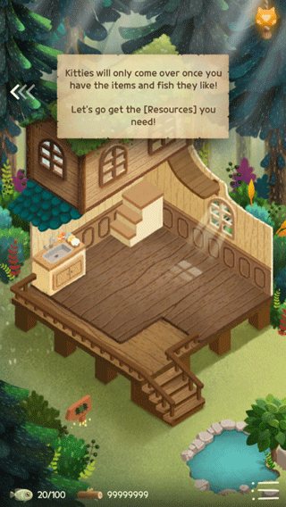 另外,猫咪密林游戏玩法轻松休闲,玩家只需要在游戏里收集树上掉下来的木头以及用钓鱼竿将河里的小鱼抓起来就可以收集到丰富的资源,利用收集到的资源就可以建造更多的家具,可以将房屋布置的更加温馨,快来游戏里迎接你的猫猫吧。