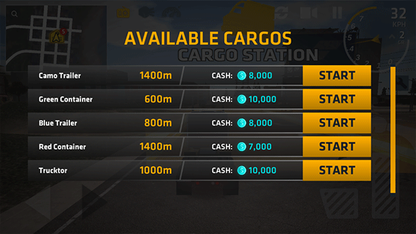 在游戏刚开始时玩家们需要去选择一辆卡车,你的任务就是不断的去解锁新的区域,根据地图找到最安全的道路,将货物送到目的地从而得到相应的奖励,有了奖励你就可以解锁更多性能好的卡车了,玩起来十分有趣。