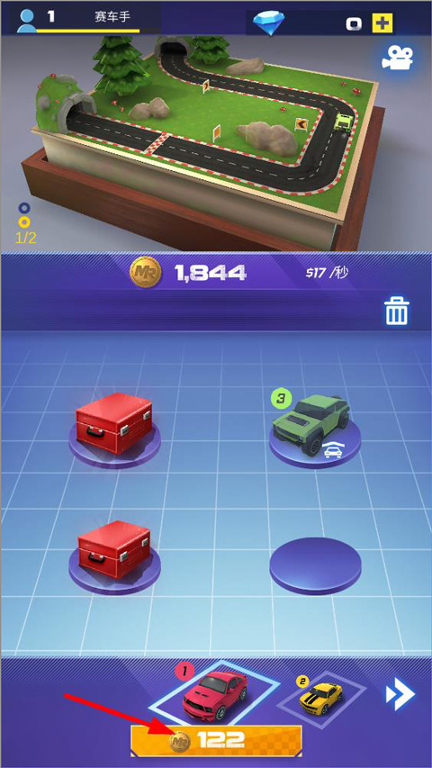 2、把赛车放到跑道上,赛道上的每辆车都会为玩家赚取金币;