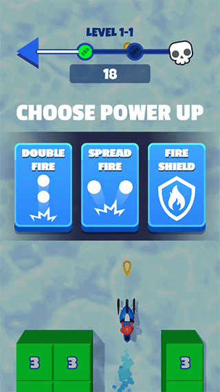 2、在射击过程你有两次技能加成,你可以选择其中任意一个技能,来帮助你提升力量,射中更多的冰块。