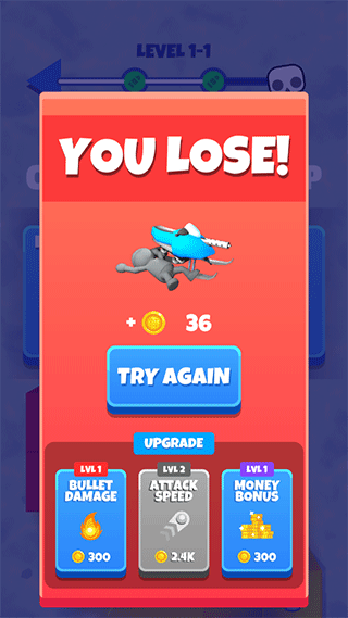 3、你还能够使用金币来购买技能,让你的子弹更多威力更强大,成功击杀大boss。