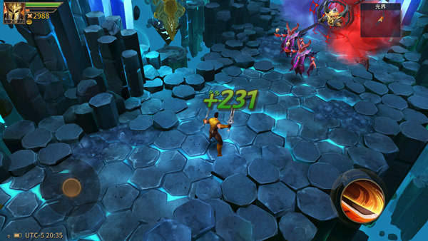 5、等待一会加载进入游戏,游戏采用横版操作,左手滑动摇杆移动,右手点击释放技能;