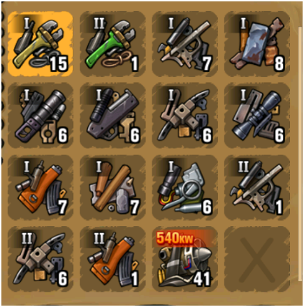 零件分为武器强化零件和改造零件还有飞机场的战机强化零件。四个一级零件能升级成一个二级零件,两个战机强化零件能升级成更高级的战机强化零件。