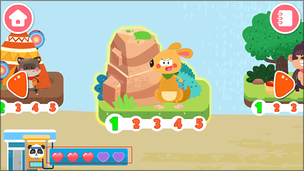 1、下载安装好宝宝巴士奇妙运动日,进入游戏选择一个动物进行比赛,左下角的爱心为游玩的次数。