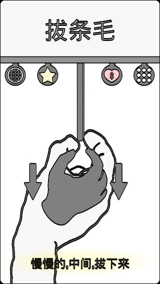 而游戏的操作,就是双指按住屏幕,然后疯狂往后移动将毛给拔出来,嗯……游戏的玩法就是这样,好了大家再见……