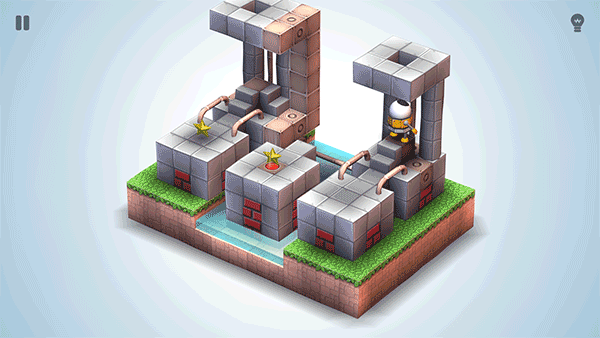 除了上述的独特功能以外,游戏同样也是一款制作精良的作品。卡通风格浓浓的画面,呆萌的机器人物设定,还有通过转换角度来进行的视觉差游戏方式都让它不失为一款佳作。
