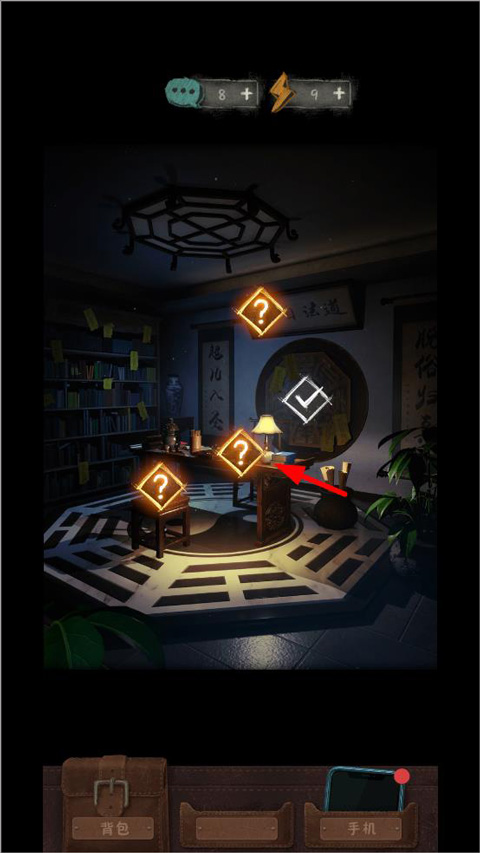 2、打开手机,玩家可查看记事本、每日一卦和缘主聊天信息