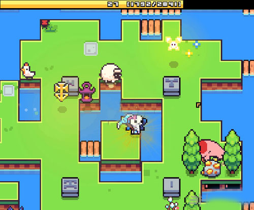 浮岛物语是由HopFrog制作,Humble Bundle发行的一款沙盒冒险生存游戏,采用了像素风格元素设计,场景布局清爽、整洁、可爱,让玩家有良好的游戏体验。游戏中玩家将从白手起家开始,通过资源、装备的不断收集来不断扩充自己的实力,在有了一定的资本后便可以闯荡世界,建立自己的居住地,岛上所呈现的资源仅有树、石头、铁矿和金矿这四种,玩家需要依据指引先采集石头并且利用石头建造一个熔炉,从此开始了刀耕火种的原始社会。在浮岛物语游戏中玩家也需要完成一些简单的制造,例如:锻造台、缝纫站、捕鱼陷阱等,同时也可以自由探索这个世界,可以通过收集各种素材来制作不同的武器、物品,还有建筑和战斗等元素。在前期,游戏的难度不是特别大,只需要玩家完成基本的采集和制造任务即可,这个阶段地图上暂时不会出现攻击型物种,玩家只需要依着不停的开采就可以轻松渡过前期,换而言之,游戏的上手难度不是很大,对于新手玩家比较友好。