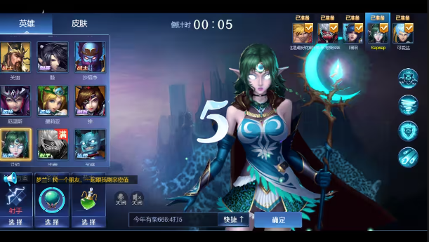 2、开始匹配,选择一个自己的玩的英雄,里面有射手、坦克、刺客,大家可以根据自己喜好进行选择;