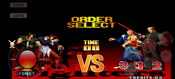1、首先下载安装本站提供的拳皇97安卓单机版游戏,投币,确认开始游戏,选择我们喜欢的英雄