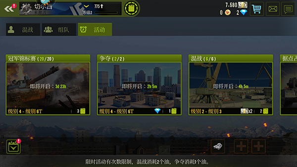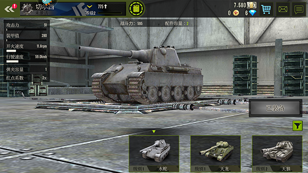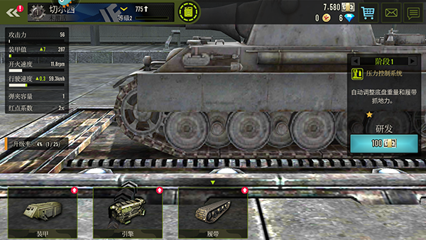 5、玩家可以在兵工厂中升级坦克的装甲、炮管、引擎等装备,提升坦克的攻击力、射速、移动速度等性能。升级需要消耗军费和时间,玩家可以通过完成任务或战斗来获取军费。