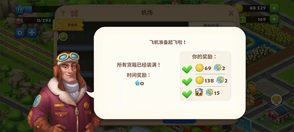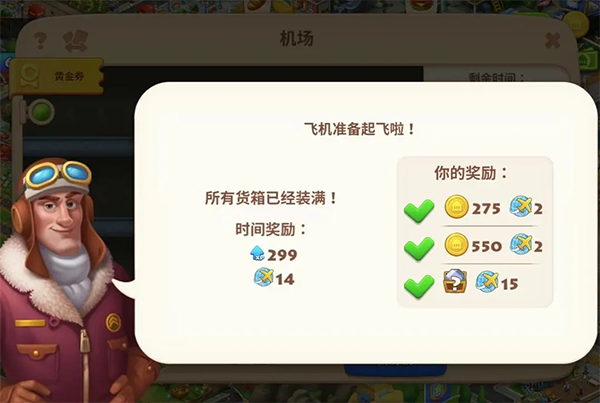 飞机起飞剩余时间不足3分钟,起飞时间奖励的经验值0